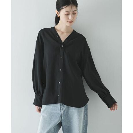 Vネックが端正な抜け感を与え、オンオフ問わず軽やかに着回せるネックブラウス。
