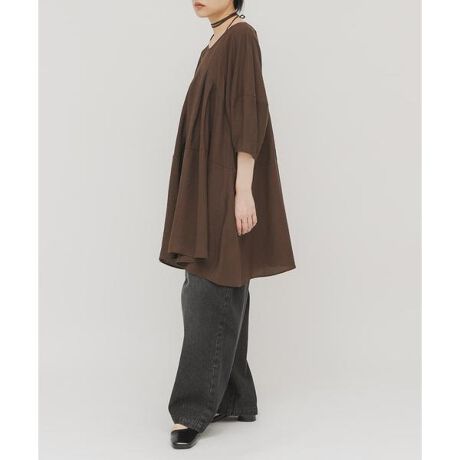 ネックに付いたリボンがアレンジ可能な1着。甘くなりがちなミニワンピースですが、二の腕カバーが期待できる袖のフォルムや、チョーカーデザインで少しモードな印象に仕上げました。程よい透け感なので、合わせるボトム次第でロングスパン活躍します。