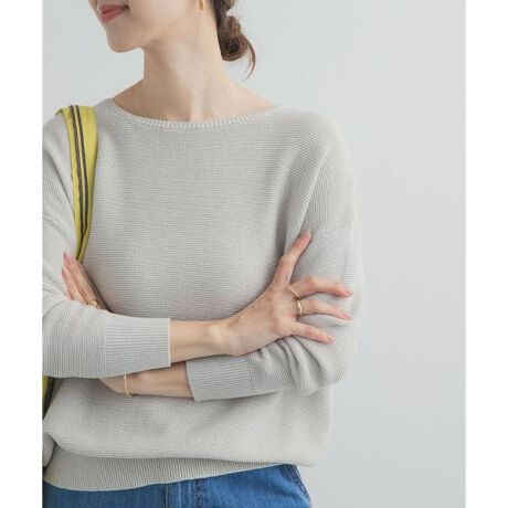 春先から着やすい柔らかな綿100%の糸を使用し、ニュアンスのあるガーター編みで仕上げたニットをご用意しました。