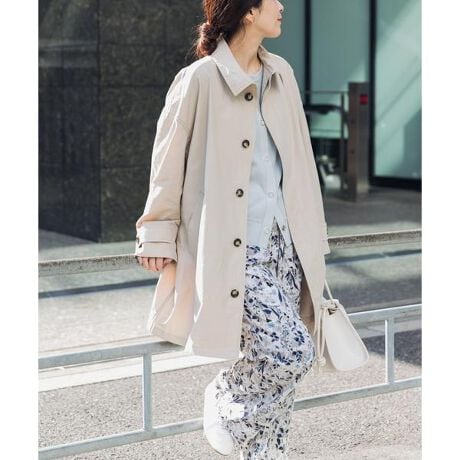 春の季節にぴったりなスプリングコートは、折り返し可能なスタンドカラーが特徴の一着。