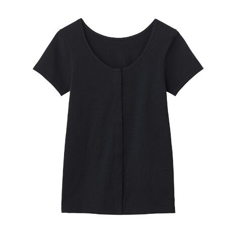 少ない力で外しやすく、着脱しやすい前開き2分袖インナーです。
