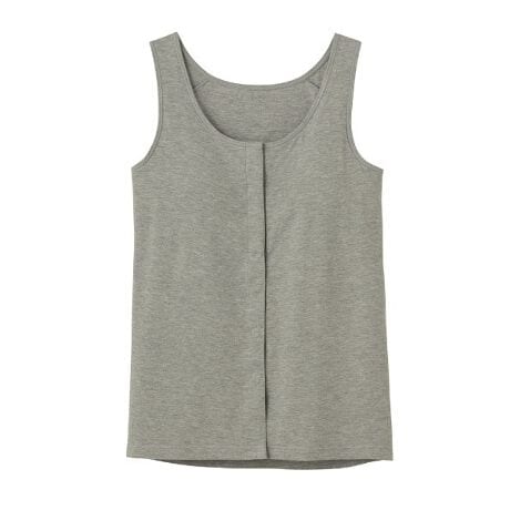 前開きのタンクトップとして、日常的に着て頂くことはもちろん、診察時、入院時、授乳期、乳がん手術後、腕が上がりにくくなった時など様々な用途にお使い頂けます。