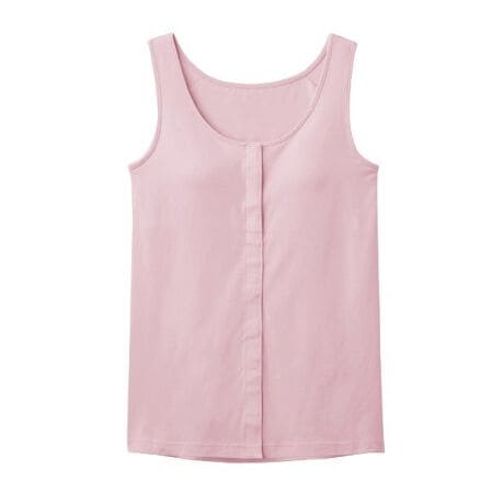 前開きのタンクトップとして、日常的に着て頂くことはもちろん、診察時、入院時、授乳期、乳がん手術後、腕が上がりにくくなった時など様々な用途にお使い頂けます。