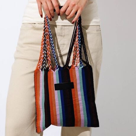 人の手で一つ一つ丁寧に作られているハンドメイドバッグは、メキシコの先住民が細い糸を手で織って製作した伝統工芸品の織物を使用。
