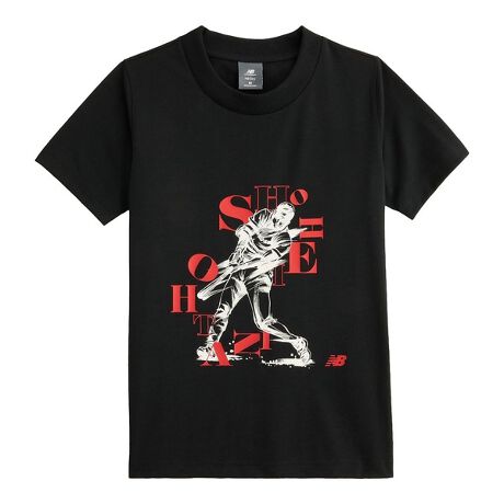 [型番:87021291]大谷翔平選手のAlways on Logoコレクション。二刀流をテーマにした躍動感のあるバッティンググラフィックをプリントしたジュニア用Tシャツ。吸汗速乾性に優れたNB Dryを搭載したポリコットン素材を使用し、リラックスフィットのシルエットで快適な着心地を提供。リブ仕様の袖が、オフフィールドはもちろん、カジュアルな着こなしにもマッチ。後ろ襟下のシグネチャーロゴプリントもさりげないアクセント。【YT61K2A3BK】