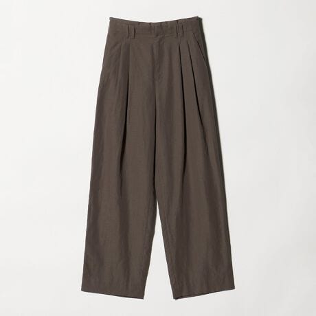 上品な麻ブレンド素材でお作りしたワイドパンツ。