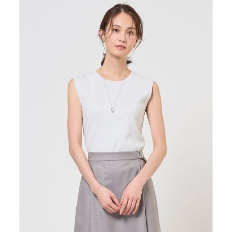 ■デザイン程よいハリ感が魅力のタンクトップ。ボディラインを拾いにくいしっかりとした編地と、襟の開きや肩の露出を控えたサイジングに仕上げました。ジャケットやカーディガンのインナーとしてはもちろん、透け感のあるブラウスやレーシーなニットの下に着てもサマになる、着回し力の高いアイテムです。ニット仕立てならではの上品さがあり、オフィススタイルから休日のリラックスシーンまで幅広く活躍します。カラーは、清潔感のあるホワイト(#001)、コーディネートを引き締めるブラック(#005)、ナチュラルでやわらかい印象のグレージュ(#033)、クールでシャープな印象のシルバー(#091)の4色展開です。