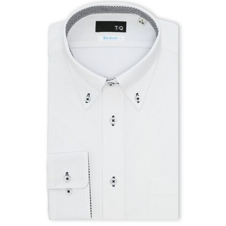 表面感のあるドビーの織り柄(ダイヤ)です。衿型はアンタイド(ノーネクタイ)でも衿立ちよく収まり、オフィスカジュアルにもぴったりなボタンダウンを採用しています。衿腰内・カフス裏の別生地と、釦ホール・釦付け糸に使用した色糸がアクセントになっています。