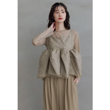 陰影が生まれて表情のあるレースを使用したペプラムビスチェ。
