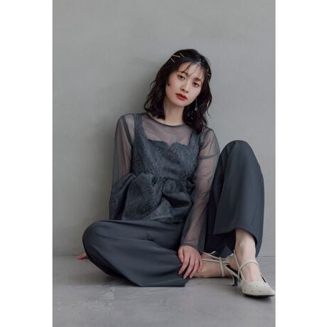 シアーのインナーは、チュールを2枚重ねにして程よい透け感に仕上げました。