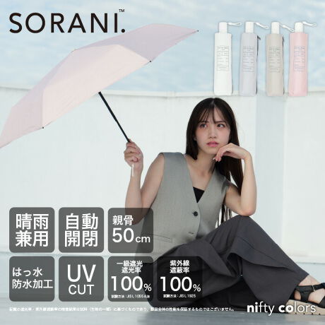 ハンドル部分のボタンを押すだけで自動で開閉してくれる親骨50cmのコンパクトで便利な自動開閉折りたたみ傘です。たたんだ時は高さ約23cm、重量約217g(本体)と従来の自動開閉の「長い、重い」を解消しました。コンパクトでも6本骨構造なので開くと大きく、十分に日差しや雨を防ぎます。紫外線遮蔽率100%、UPF50+、遮光率100%、遮熱性効果で強い日差しや暑さをしっかり遮ります。雨の日にも安心なはっ水・防水効果もあり、耐水圧の検査も18,000mm以上を計測していますので、晴雨兼用日傘としてオールシーズンお使いいただけます。傘骨は特殊な構造により手を離した位置でシャフトの伸縮が止まり、少しづつ段階的に収納できるので安全にお使いいただけます。ケースの脇にファスナーがついているので収納しやすく、持ち運びに便利です。※記載の紫外線遮蔽(UVカット)率・UPF値・遮光率・耐水圧値は生地の状態での測定値であり、傘本体の性能を保証する数値ではございません。また、生地に施された縫製などのUV加工生地以外の部分も同様です。
