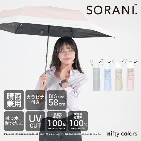広い面で日差しをガードできる大きめ親骨58cmサイズです。紫外線遮蔽率100%、UPF50+、遮光率100%、遮熱性効果のある一級遮光生地で強い日差しや暑さをしっかり遮ります。さらに、肌の深部に影響を与える近赤外線も100%遮断します。はっ水・防水機能を備え、耐水圧19,000mm以上を実測。薄く軽量な30デニール生地を採用しているので軽くコンパクトに収納可能です。親骨58cmサイズは、男性はもちろん大きめのサイズが欲しい女性の方にもおすすめです。折りたたみ時の長さが従来より約1.5cm短くなり、さらに持ち運びやすくなりました(当社比)。シンプルな切替の無地デザインで男女問わず使いやすく、バッグやベルトに掛けられるカラビナ付き。さらに、指や爪を挟みにくい「安全ろくろ(ストッパー)」仕様で、ボタン操作もスムーズです。※記載の紫外線遮蔽(UVカット)率・UPF値・遮光率・耐水圧の値は生地の状態での測定値であり、傘本体の性能を保証する数値ではございません。また、生地に施された縫製などのUV加工生地以外の部分も同様です。
