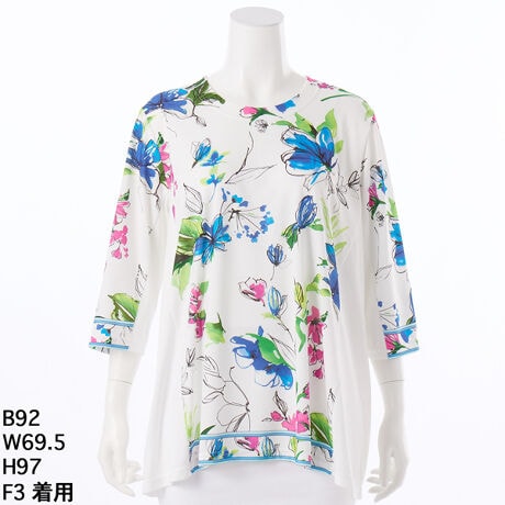 【大きいサイズレディース】ストレッチポリエステルフラワープリントプルオーバー
