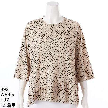 【大きいサイズレディース】ストレッチポリエステルドット柄プルオーバー