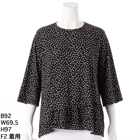 【大きいサイズレディース】ストレッチポリエステルドット柄プルオーバー