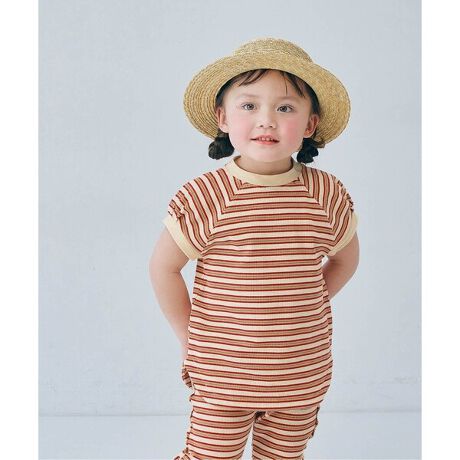 >>P222026 先染めボーダーワッフルハーフパンツ