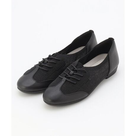 クラシックなダービーシューズをニットで軽やかに仕立てた、トレンド感ある一足です。人工皮革と薄くてしなやかなシースルーニットの組み合わせで、レースアップで甲に合わせやすく、柔らかい素材なので長時間の着用でも疲れにくい快適設計。上品なラウンドトゥとゆったりめのつま先、深めの履き口でフィット感も抜群。