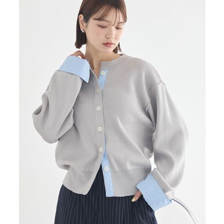 一枚で決まる、大人可愛い重ね着風。まるでシャツを重ねたように見えるフェイクレイヤードデザインが魅力のカーディガンです。袖口からのぞく配色生地がコーディネートのアクセントになり、さりげなくおしゃれ度を高めます。やや肉厚の素材感で安心感があり、季節の変わり目にも重宝します。前開き仕様なので羽織りとしても使いやすく、ボタンを留めてプルオーバー風に着こなすのもおすすめです。パンツにもスカートにも合わせやすく、きれいめからカジュアルまで幅広く活躍します。忙しい朝も一枚でレイヤードスタイルが完成する、着回し力の高いアイテムです。透け感[なし]