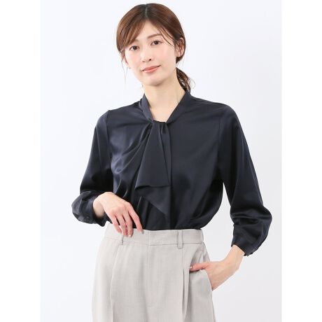 ねじりボウタイ 8分袖 プルオーバー ブラウス