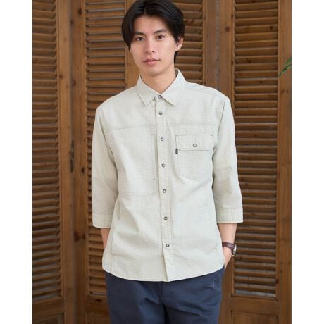 肌離れの良いサッカー素材を使用した、軽やかな七分袖シャツです。