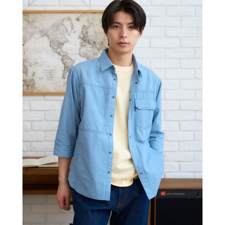 着脱がスムーズなドットボタン仕様を採用することで、シャツとしても軽い羽織りとしても使い勝手の良い実用性を備えています。