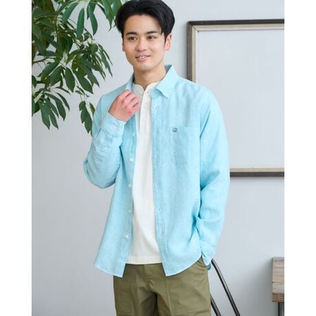 シワになりにくいフレンチリネン100%を使用したボタンダウン襟シャツです。