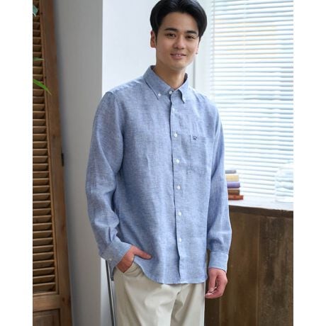 シワになりにくいフレンチリネン100%を使用したボタンダウン襟シャツです。