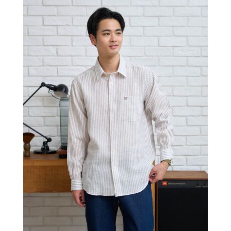 フレンチリネンストライプシャツ [イージーケア]