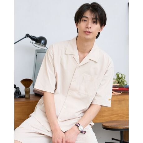 さらっとした風合いでシワになりにくく、優れた速乾性を備えた高機能なカットソー素材で仕立てたオープンカラーシャツです。