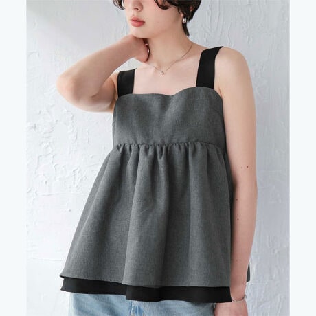 ・リネンライクな表情がシーズンムードを高める、軽やかで涼しげなペプラムトップス