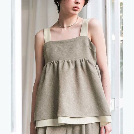 ・リネンライクな表情がシーズンムードを高める、軽やかで涼しげなペプラムトップス