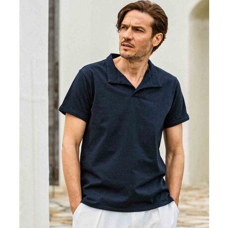 こだわりのパターンで仕立てたイタリアンカラーの半袖カットソー。