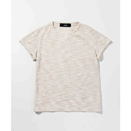 杢調のマルチボーダーが涼やかな表情を演出する半袖カットソー。