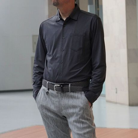 衿端にワイヤーを仕込んだレギュラーカラーのジャージ素材シャツとなります