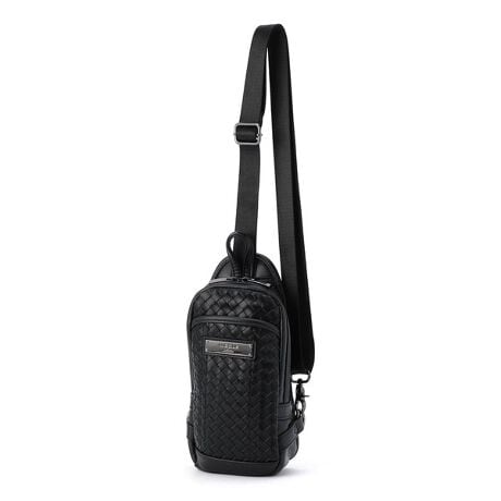 フロント面に艶感のある合成皮革をメッシュ調に編み込んだ高級感溢れるボディバッグです。