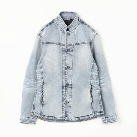 フロント、カフスにはブランドロゴ入り釦を使用し高級感を出し素材と加工で大人カジュアルなアイテムに仕上げています。