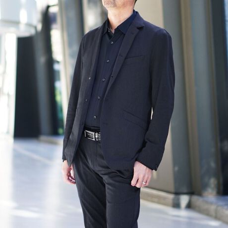 衿端にワイヤーを入れることで折り返してラペルとしても綺麗に収まるつくりとなっているので1着で2通りの着方が楽しめるジャケットとなっています。