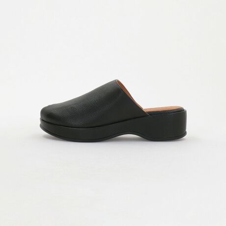 つま先がほんの少し開いたピープトゥが印象的なオブリークラインのミュールサンダル。
