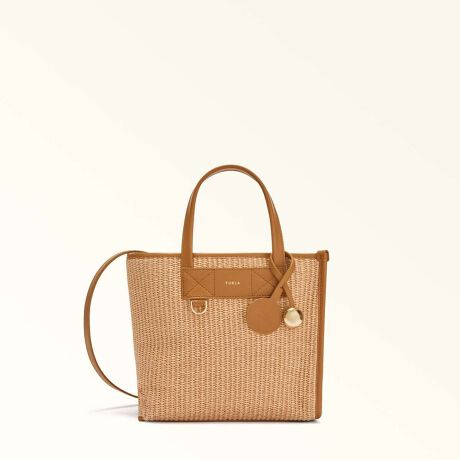 表情豊かなウーブン(織り)生地を使用した、コンパクトで洗練されたレクタンギュラー(長方形)シルエットが特徴です。内側にはアシンメトリーな仕切りや斜めのポケット、ファスナー式コンパートメントを備え、機能美を追求した設計。特別仕様の「Furla Archive」レザータグと、半球型の「スフェラ(Sfera)」メタルチャームが、ブランドの歴史とコンテンポラリーな輝きを添えています。