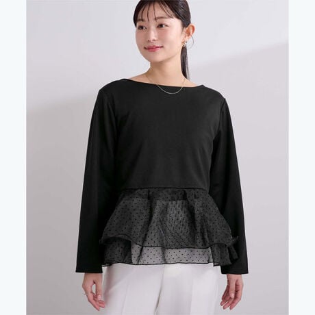 透け感のあるチュールを重ねたペプラムデザインのプルオーバー。