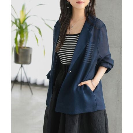 サッと羽織るだけでスタイリングが決まるジャケットを春夏に使いやすいメッシュ素材でご用意。