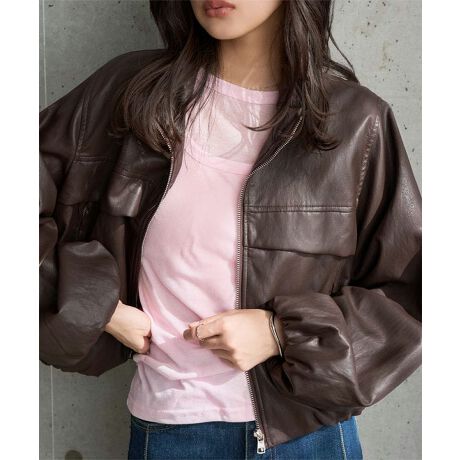裾バルーンレザーブルゾン [K1441]