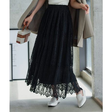 レディな印象ながらTシャツやスニーカー合わせなどカジュアルアイテムとも相性よくスタイリングしていただけるレースマキシスカートです。