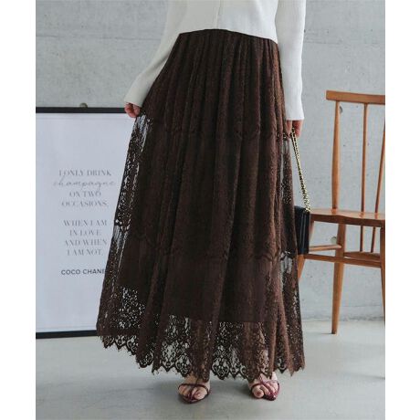 上品で華やかな総レーススカート。