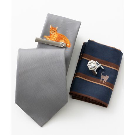 ネクタイの猫ちゃんと合わせるとより存在感が増すメガネデザインは、ほかにはない遊び心。