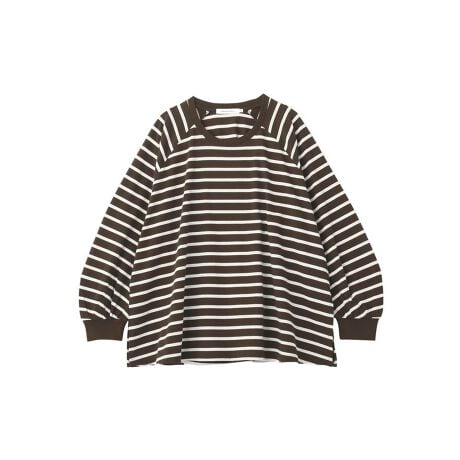 ゆったりシルエットでこなれる大人ボーダーロンT程よく広がるフレアシルエットが特徴のボーダーロングスリーブトップスです。ゆとりのあるデザインが体のラインを自然にカバーし、リラックス感のある大人カジュアルスタイルを演出します。ラグランスリーブ仕様で肩まわりが動かしやすく、快適な着心地を叶えてくれるのも魅力です。定番のボーダーデザインはコーディネートに取り入れやすく、デニムやワイドパンツと合わせたカジュアルスタイルはもちろん、スカートと合わせてやわらかな印象の着こなしにもおすすめです。裾に向かって広がるシルエットがさりげない抜け感をプラスし、シンプルながらもこなれた雰囲気に仕上がります。毎日のコーディネートに取り入れやすく、季節の変わり目にも活躍する着回し力の高い一枚です。透け感[ややあり]