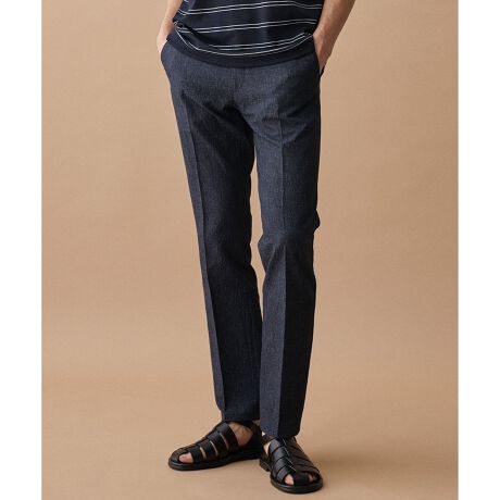 同素材のジャケット、ベストとのセットアップスタイルはもちろん、ポロシャツやリネンシャツと合わせた涼しげなスタイルがおすすめです。機能性が高いため、出張や旅行などのアクティブなシーンでも活躍します。