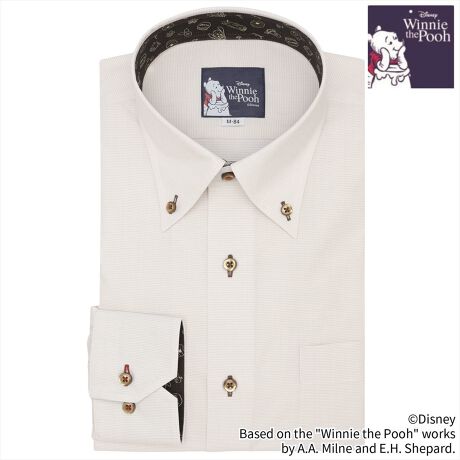 100エーカーの森に住む「くまのプーさん」デザイン別生地を台衿内側・カフス裏側に配置したシャツ。