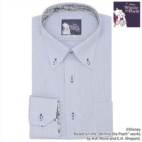 100エーカーの森に住む「くまのプーさん」デザイン別生地を台衿内側・カフス裏側に配置したシャツ。