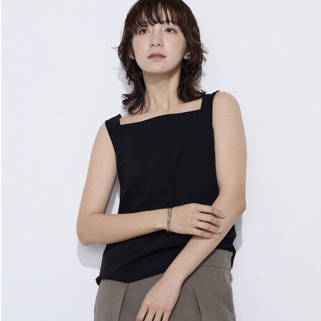 前も後も襟ぐりを高めに設定したスクエアネックなので安心感がありインナーとして使いやすく、デコルテを美しく見せつつ肌は見せすぎない、クリーンな印象を演出します。
